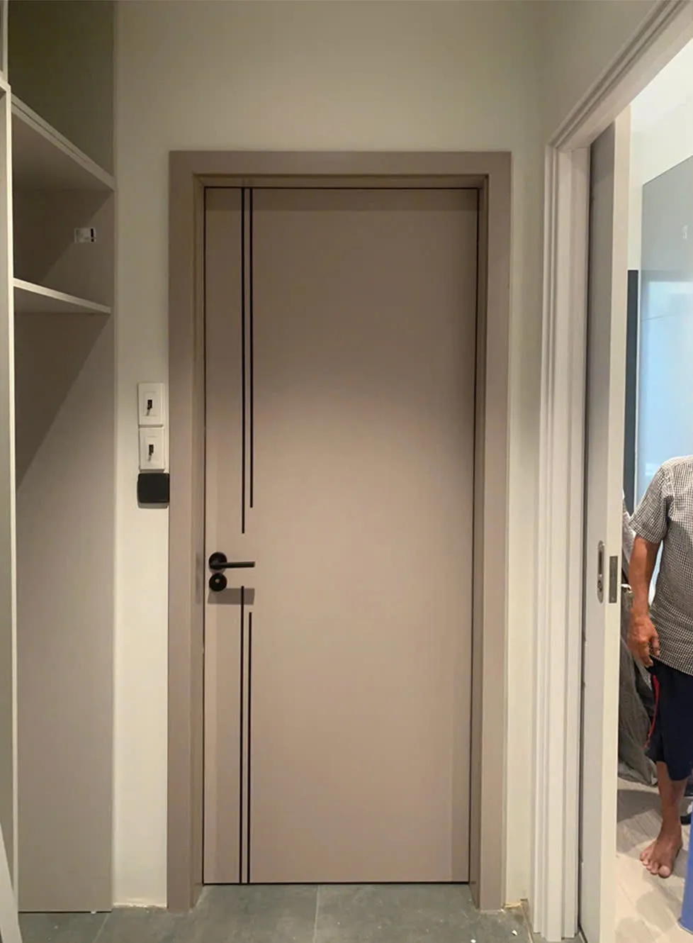 Mẫu Cửa gỗ carbon mẫu chỉ nhôm giá phát sinh 250,000đ/bộ. Kích thước (900×2180)mm