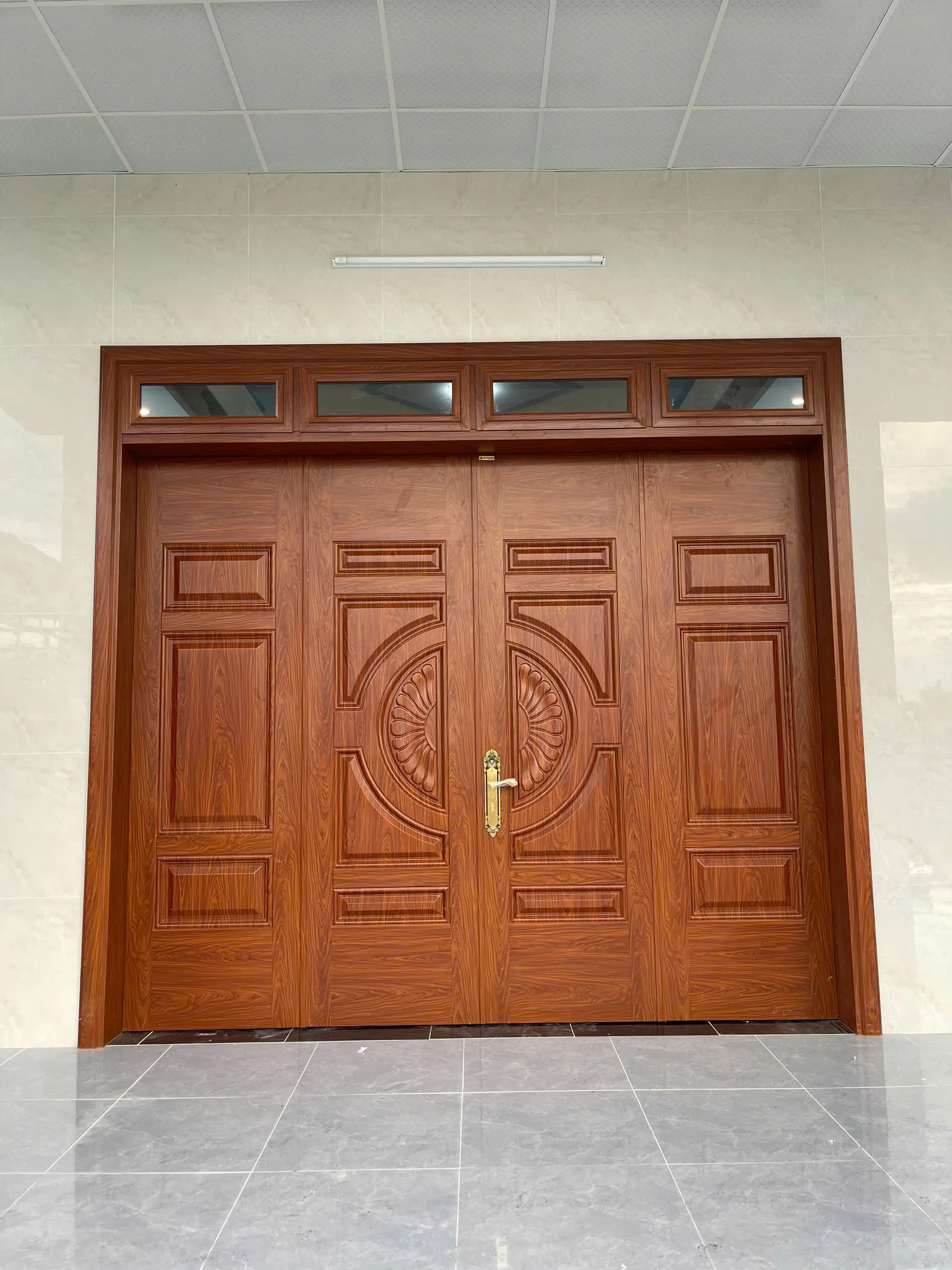 Cửa được làm từ thép mạ điện chất lượng cao, chịu lực tốt, không cong vênh hay mối mọt dù gặp mưa nắng thường xuyên. Lớp sơn tĩnh điện kết hợp phim vân gỗ giúp cửa bền màu, dễ lau chùi, hạn chế trầy xước theo thời gian.