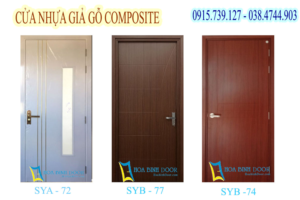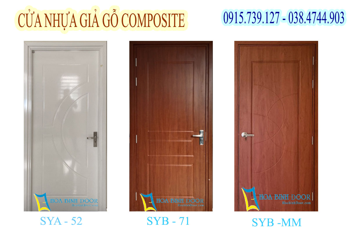 1 Cửa Nhựa Giả Gỗ Composite HoaBinhDoor Phủ Vân Gỗ – SYB ( Phủ Da ) Bộ 800/900 x 2200 3.000.000